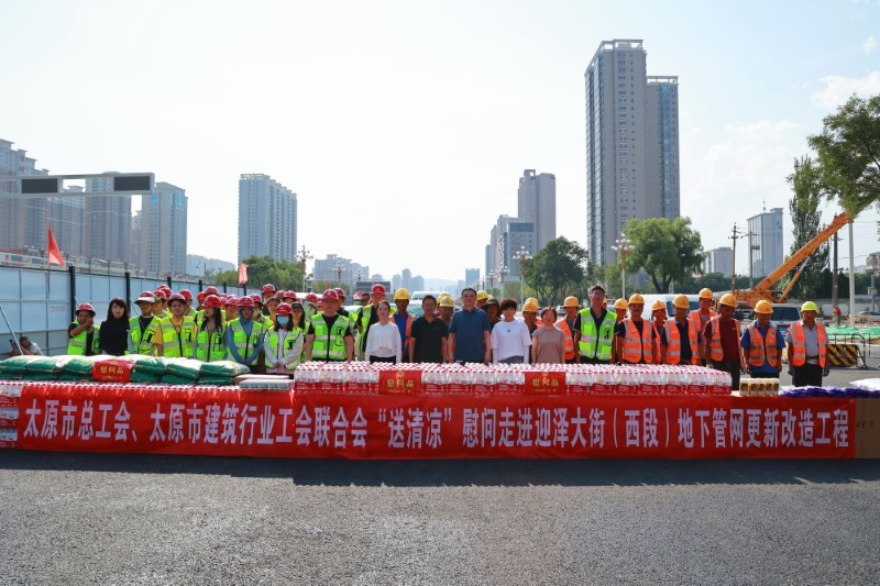 8月14日,太原市建筑行業工會聯合會“送清涼”慰問活動走進太原市政集團承建的迎澤大街(西段)地下管網更新改造工程項目現場。