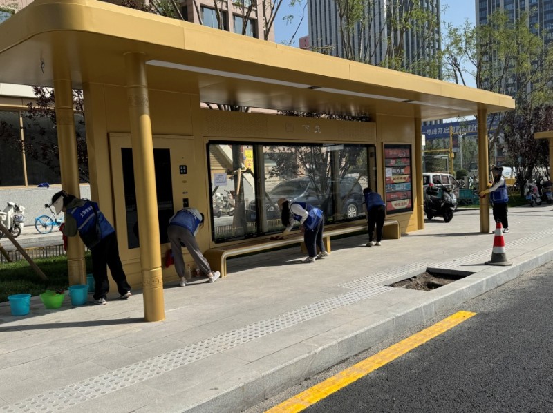 活動自9月4日起為期六天,覆蓋迎澤大街(西段)全線,重點圍繞附屬設施清潔與道路精細化維護展開?;顒又?,身著統一藍色“太原市政集團”馬甲的志愿者們,手持長柄擦洗器、水桶、抹布、鏟刀、掃帚等工具,對道路兩側公交站臺、路燈基地、護欄、照明燈桿等設施進行系統清理與擦洗;同步推進地磚灌縫精細化維護作業,通過專業操作,確保每一條裂縫都“嚴絲合縫”,有效提升路面耐用性與通行舒適度,以實際行動為市民出行安全與舒適保駕護航;同時,志愿者專門對道路沿線的石頭字景觀展開描金作業,細刷蘸取金色涂料,一筆一畫精心描摹,成為主干道上一道兼具文化氣息與視覺美感的獨特風景。